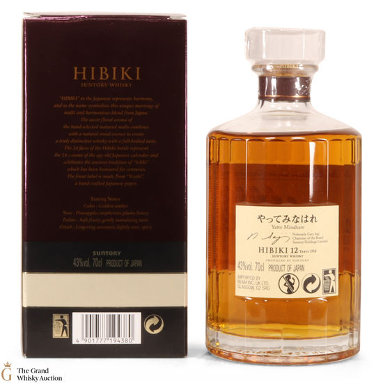 This now-discontinued Hibiki 12 year old is a superb blended Japanese whisky meaning it has become a very popular, rare and collectable bottling. Hibiki includes malt whisky from Yamazaki and Hakushu, as well as grain whisky from Chita. The whisky is partly matured in plum liqueur barrels. Unfortunately, Hibiki 12 was discontinued by Suntory in 2015.