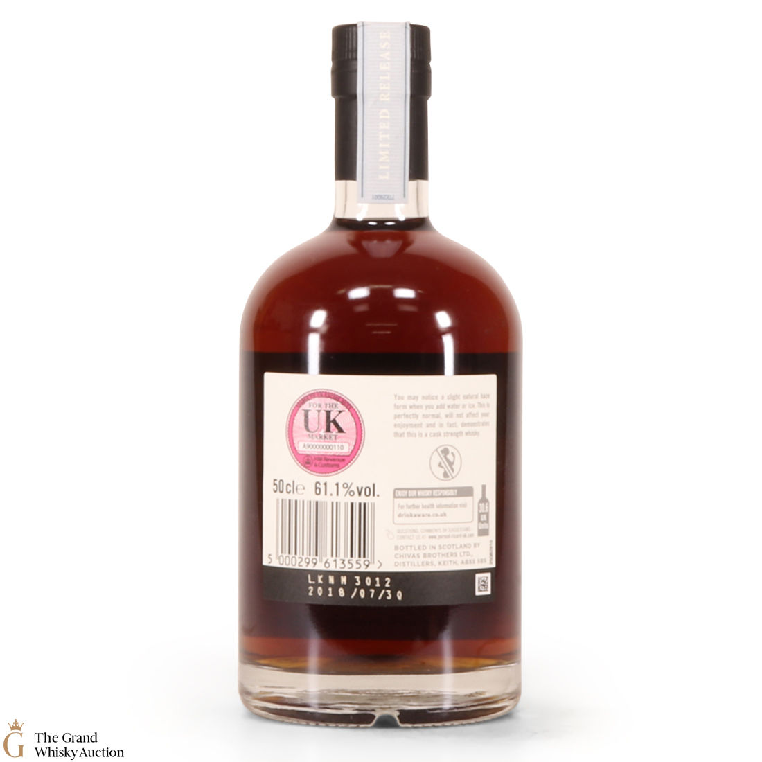 Due to the various ages of bottles and their seals, the condition of liquid is at the buyer's discretion and no claim can be lodged against failure/leakage in transit. Loss and breakage cover is available at 3% of the hammer price as standard. If the lot is not insured, no claim can be lodged against the courier or The Grand Whisky Auction for breakage or loss in transit.