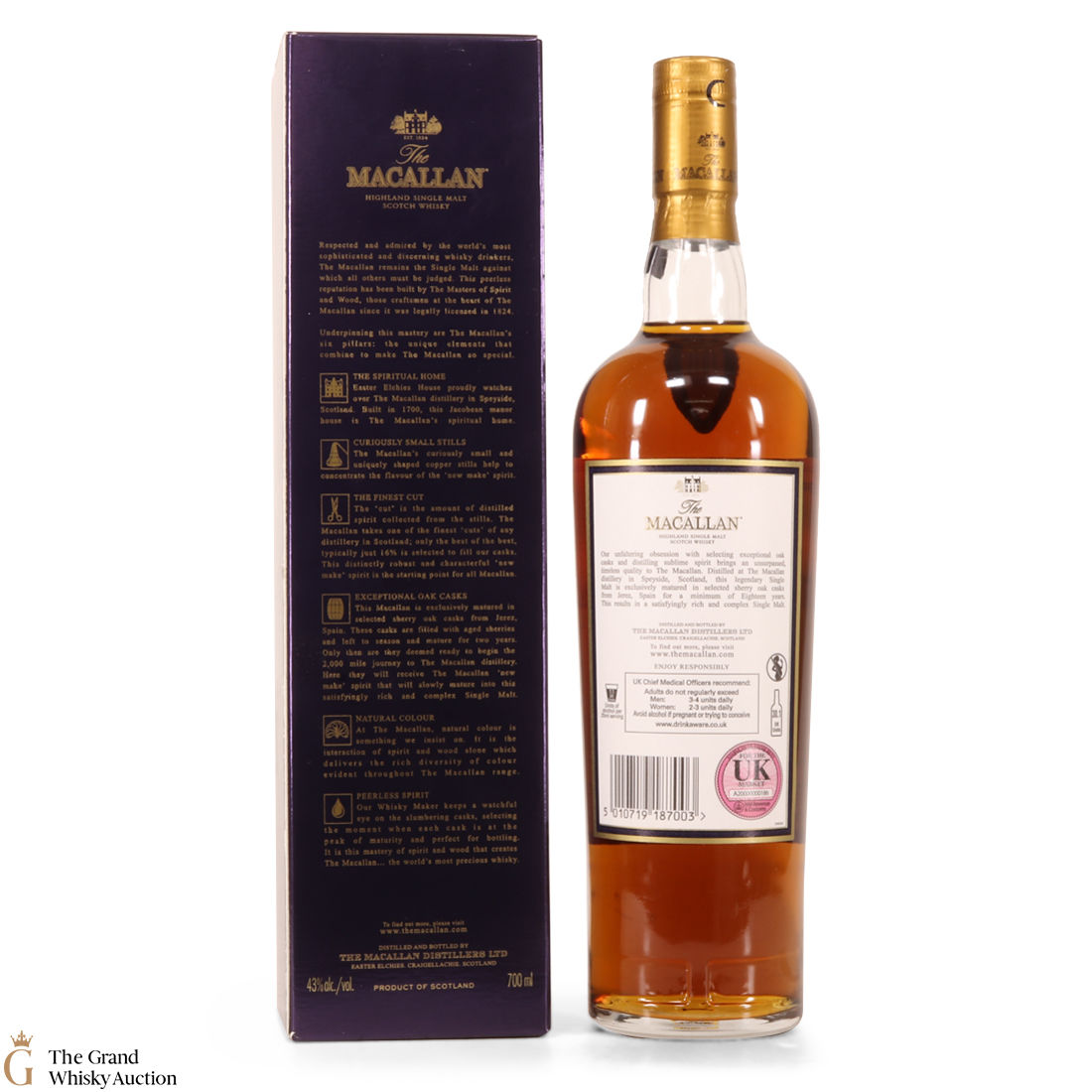 Due to the various ages of bottles and their seals, the condition of liquid is at the buyer's discretion and no claim can be lodged against failure/leakage in transit. Loss and breakage cover is available at 3% of the hammer price as standard. If the lot is not insured, no claim can be lodged against the courier or The Grand Whisky Auction for breakage or loss in transit.