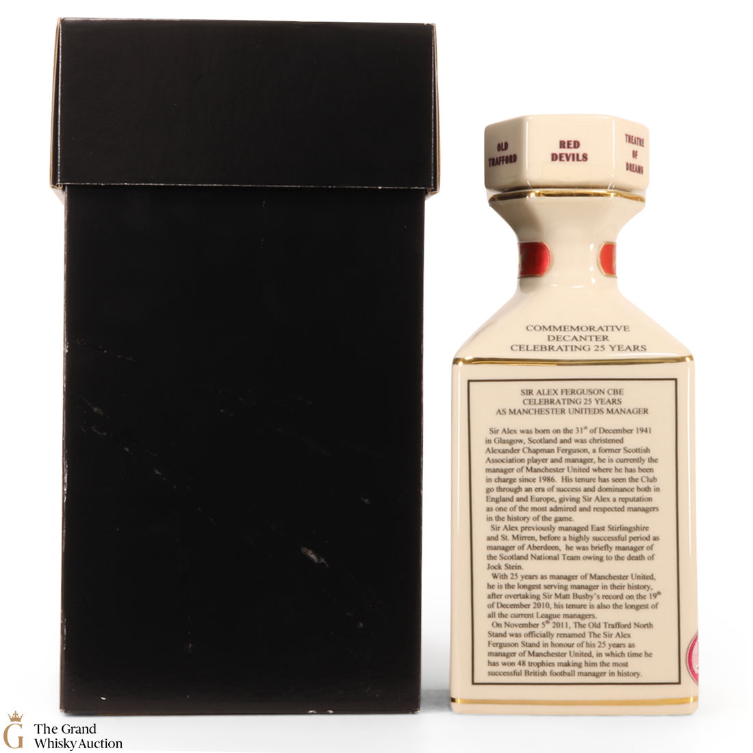 A very well presented decanter fitting for one of the most successful football managers of all time. This commemorative decanter celebrates 25 Years as his being the "Boss" at Utd.