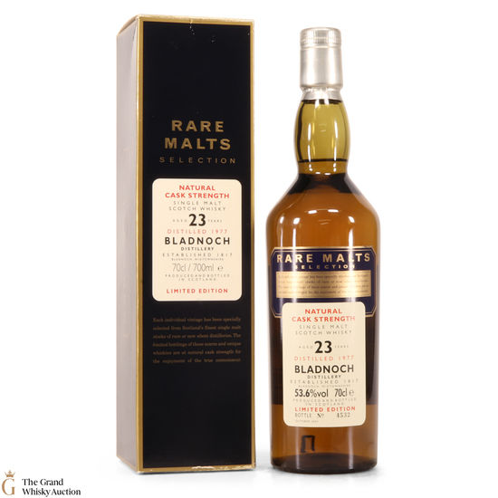 This Bladnoch 23 Year Old limited edition was bottled for the Rare Malts series. Distilled in 1977 this Lowland single malt was bottled at the natural cask strength of 53.6% in October 2001.