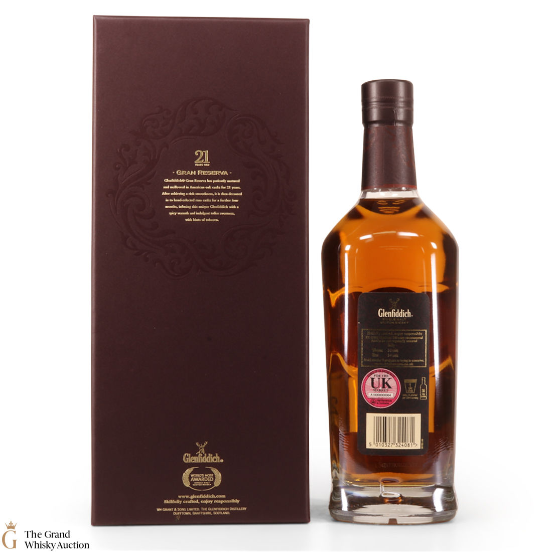 The Glenfiddich Gran Reserva has matured and mellowed in American Oak Casks for 21 years before been finished in previously used Caribbean Rum casks for 4 months.