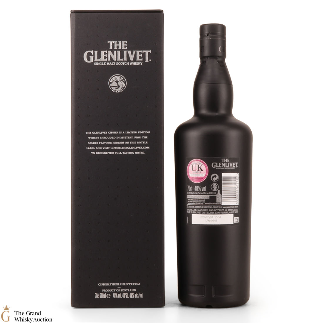 A limited-edition single malt whisky from The Glenlivet's Master Distiller, Alan Winchester. The Glenlivet Cipher comes in an opaque black bottle without cask information, tasting notes and age statement. This bottle is surrounded by mystery. You are encouraged to find the secret flavour hidden on the bottle label and visit the Cipher website for full tasting notes.
