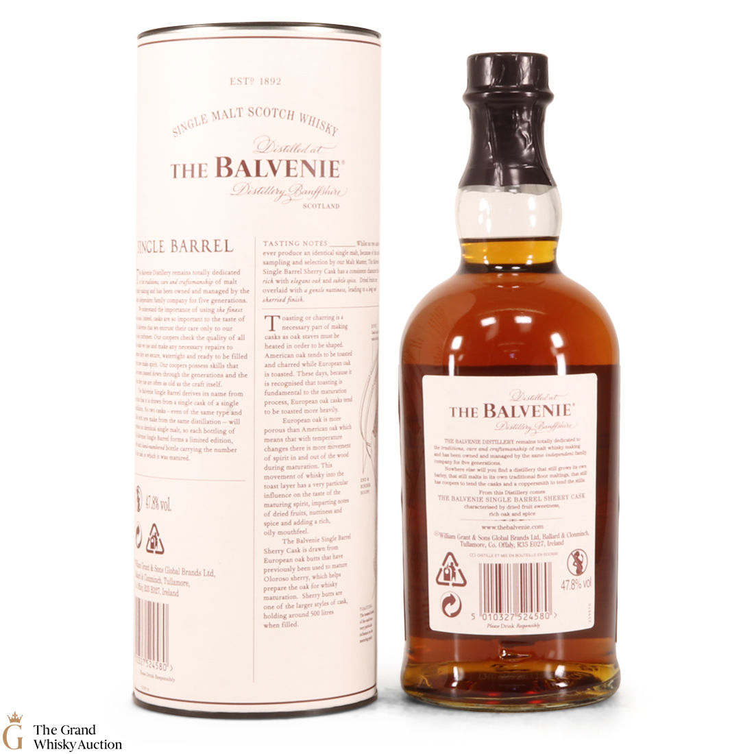 This bottle is one of no more than 800 bottles drawn from the single cask number 15650. Matured in a European Oak Sherry Butt for at least 15 years before being selected by David Stewart, the Balvenie Malt Master.