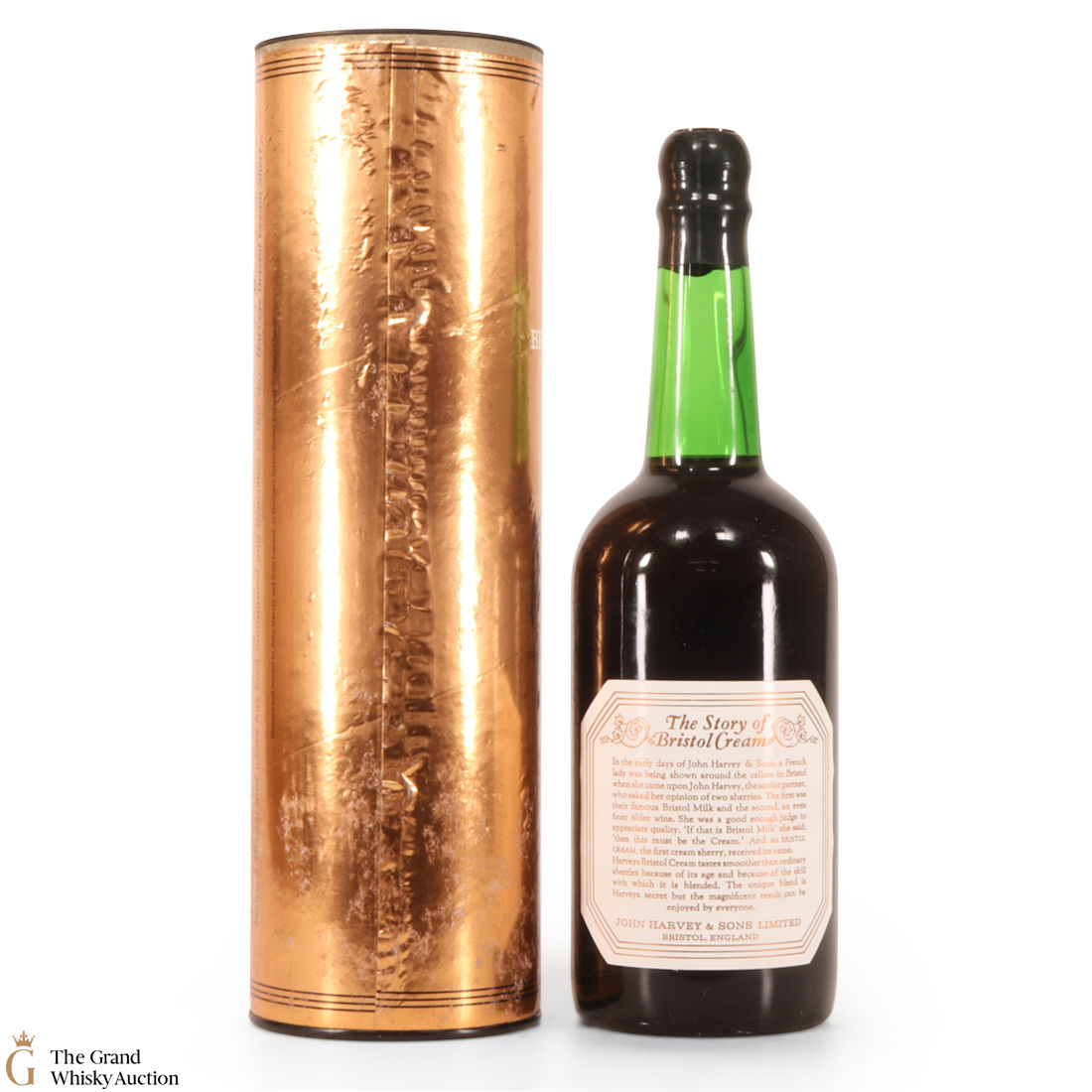 A 1980s bottling of Harveys Bristol Cream Sherry, with presentation tube featuring the coat of arms of the city of Bristol.