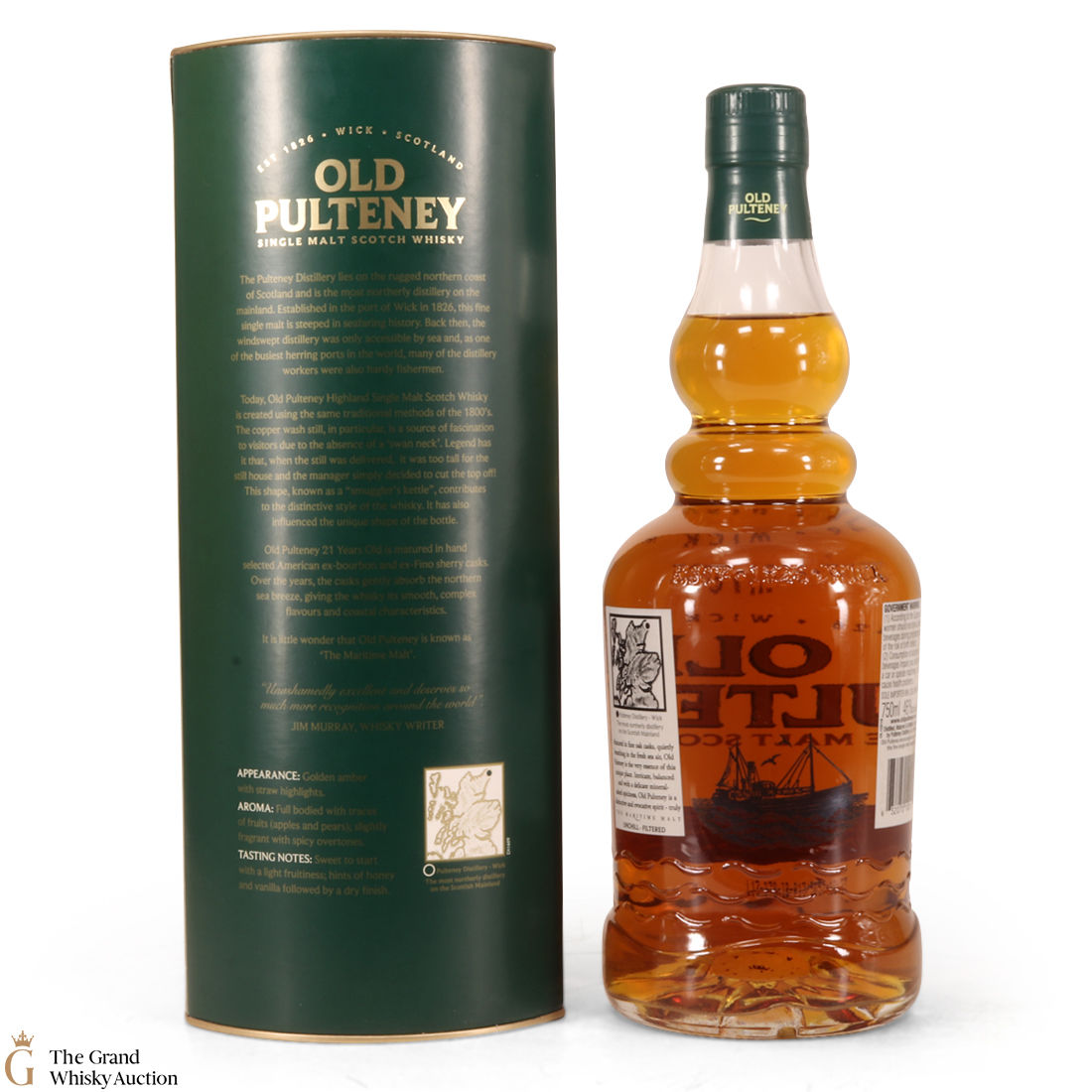 Old Pultney is known as the Maritime Malt due to the distillery location at the very North of Scotland and this is honoured with the unique shape of the bottle.