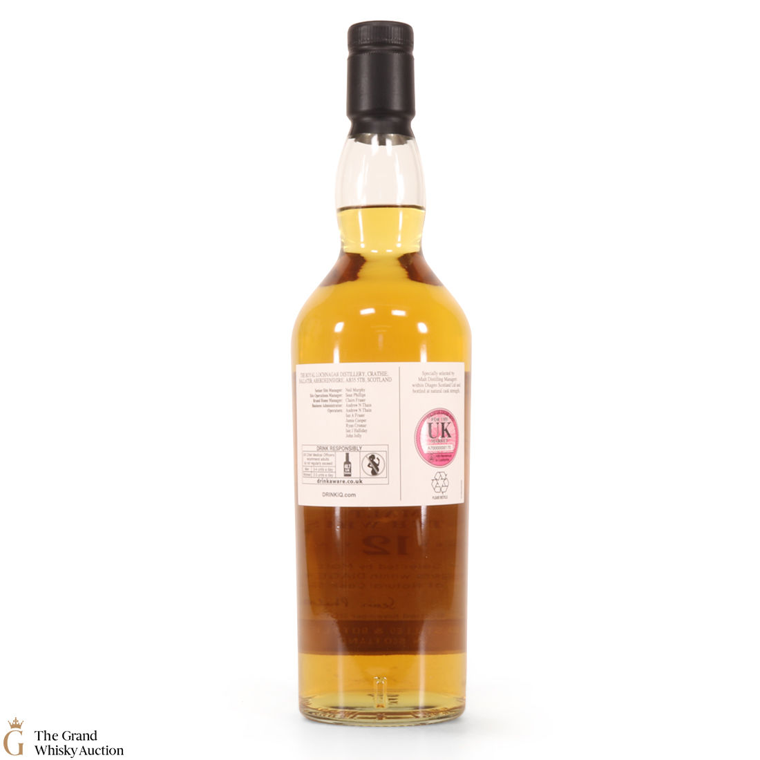 Due to the various ages of bottles and their seals, the condition of liquid is at the buyer's discretion and no claim can be lodged against failure/leakage in transit. Loss and breakage cover is available at 3% of the hammer price as standard. If the lot is not insured, no claim can be lodged against the courier or The Grand Whisky Auction for breakage or loss in transit.