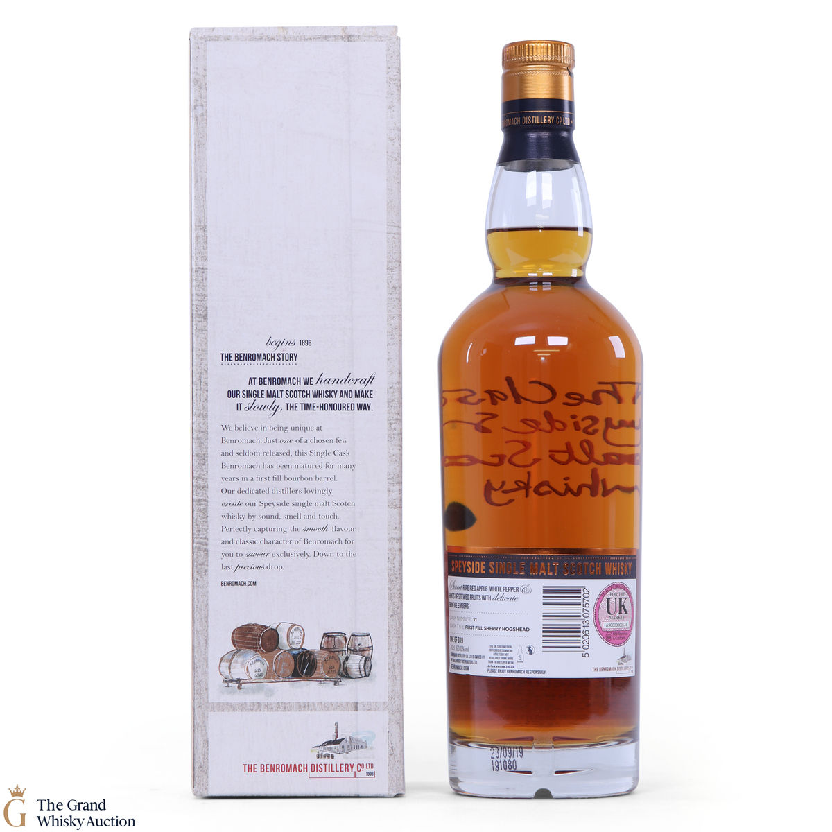 This single cask Benromach was bottled as UK exclusive. Distilled in 2011, matured in first-fill sherry hogshead #11 and bottled in 2019. This is one of 319 bottles produced.