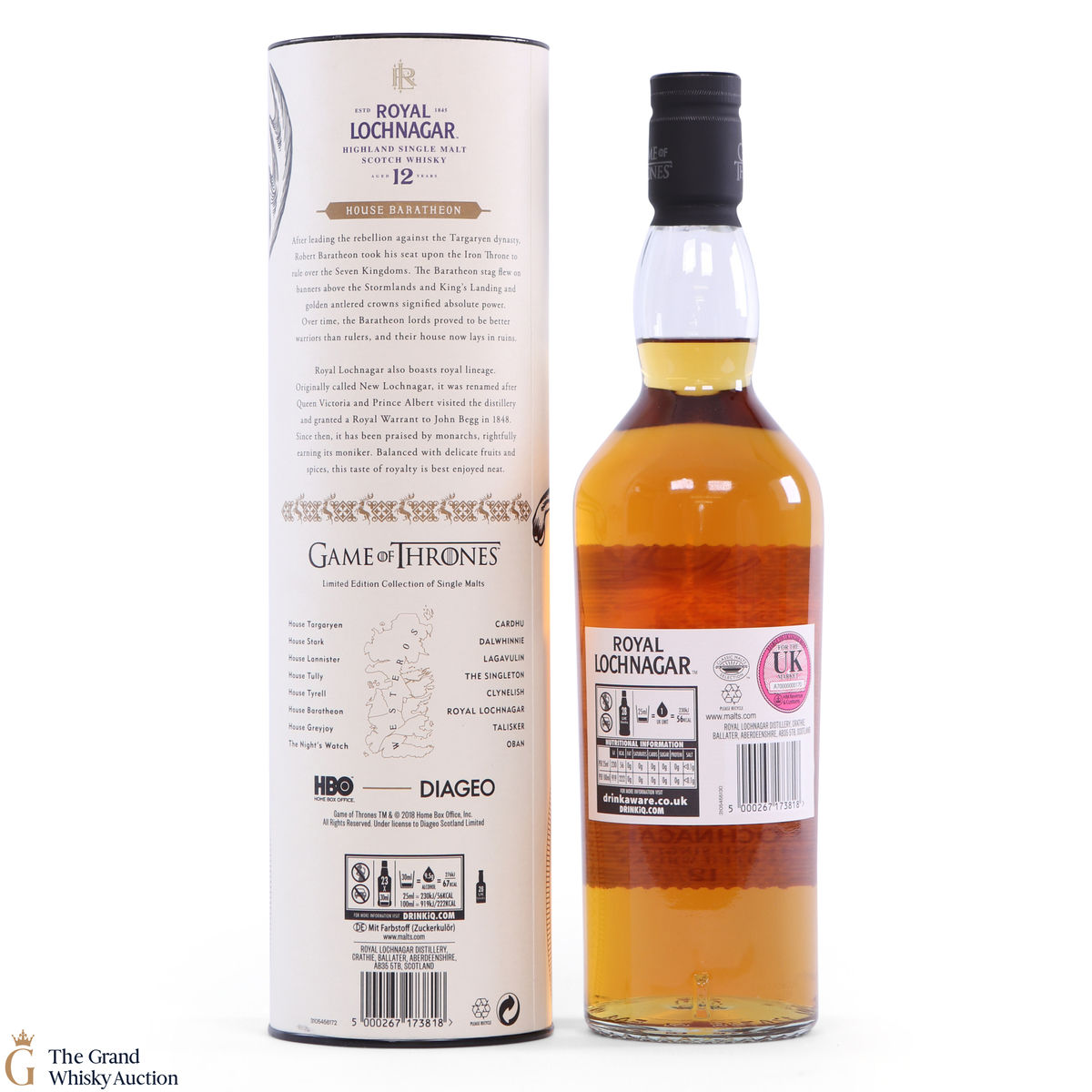 This is a limited-edition 12 year old single malt from Royal Lochnagar and it is part of Diagio's 2018 collaboration with HBO. Each single malt in the series relates to the land of houses of the Game of Thrones television series. The Royal Lochnagar bottle is decorated with a rampant black Stag, the sigil of House Baratheon that once flew on banners above the Stormlands and King’s Landing signifying absolute power.