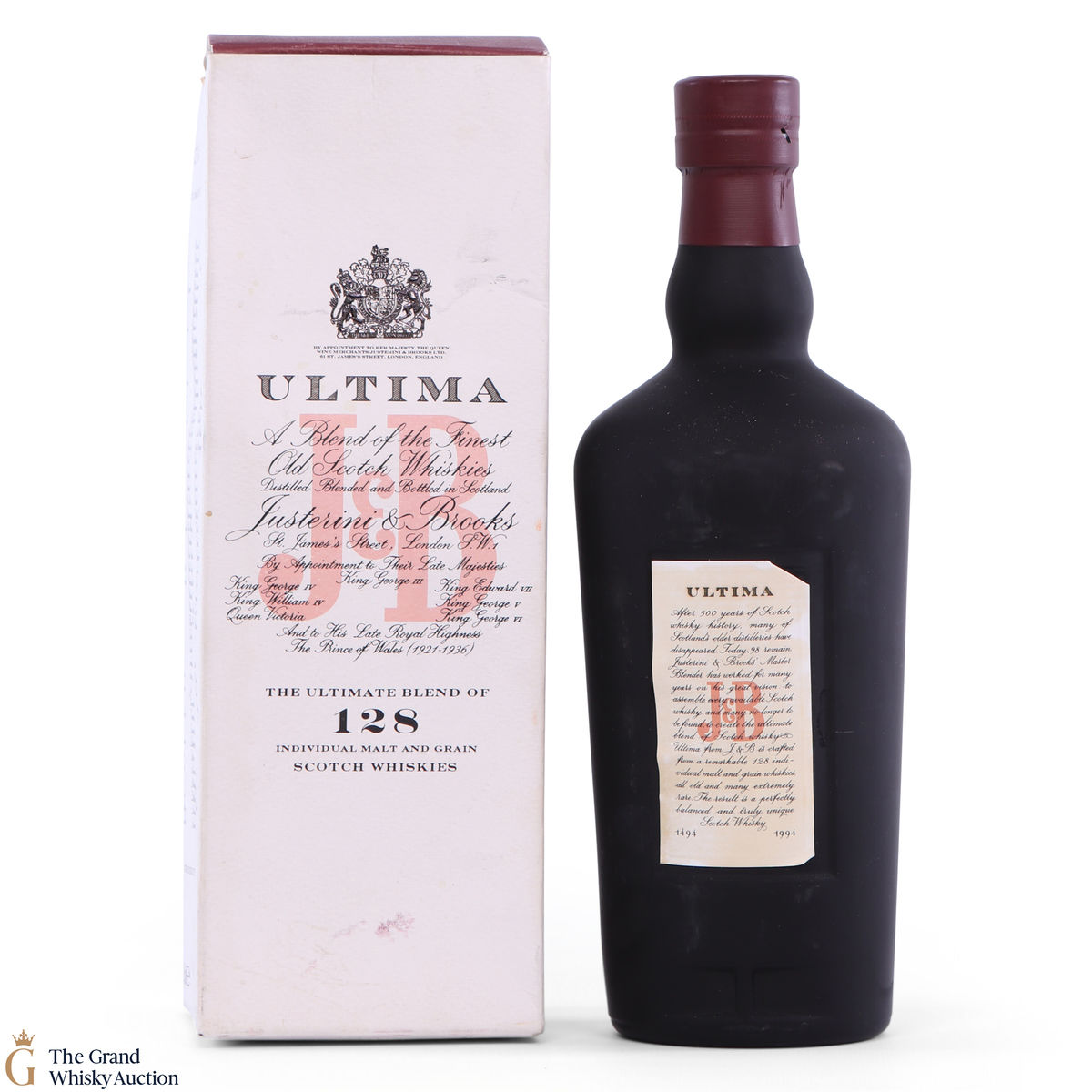 This is malt is now sadly discontinued blend by Justerini & Brooks. Ultima contains whisky from a total of 128 malt and grain distilleries, each of which is listed on the side of the presentation box.
