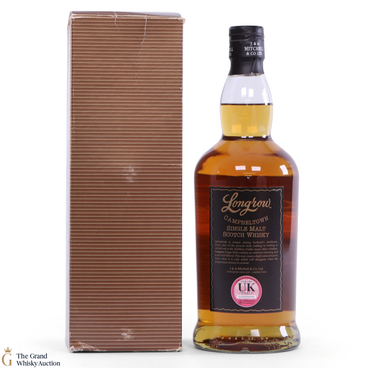 A bottle of Longrow CV which used to be Longrow's entry-level whisky. Longrow is Springbank's heavily peated whisky - this is a no age statement expression. It was named Best Peated Malt at the 2010 Malt Maniacs Awards.