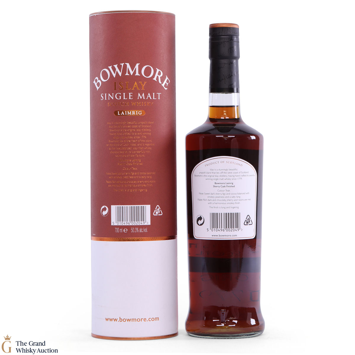 A 15-Year-Old Bowmore was matured exclusively in sherry butts and bottled at cask strength of 50.3%. This is one of just 4500 bottles produced. The bottling has been named 'Laimrig' which is Gaelic for 'Pier' and the bottling celebrates Bowmore's stone pier.