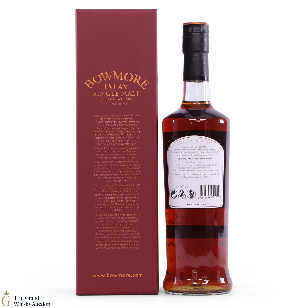 This 1992 vintage Bowmore was matured in Bordeaux wine casks.