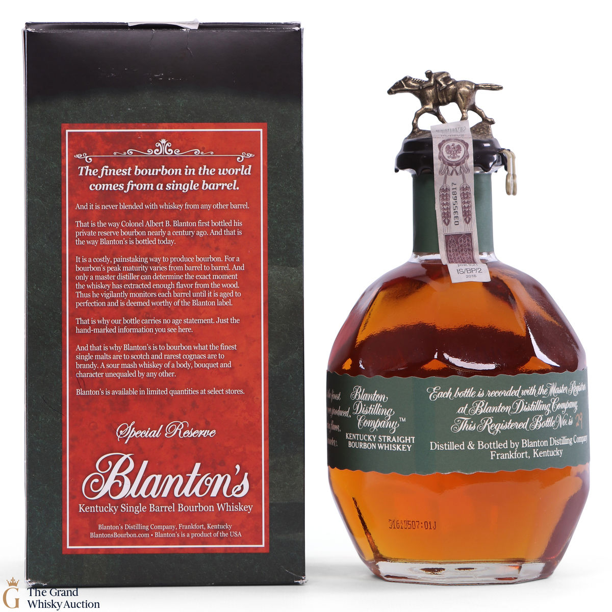 Blanton's Single Barrel Special Reserve is a lower strength single barrel bourbon. Dumped Date. Each bottle is hand-filled, hand-labelled, hand-sealed and individually numbered. 80 Proof.
