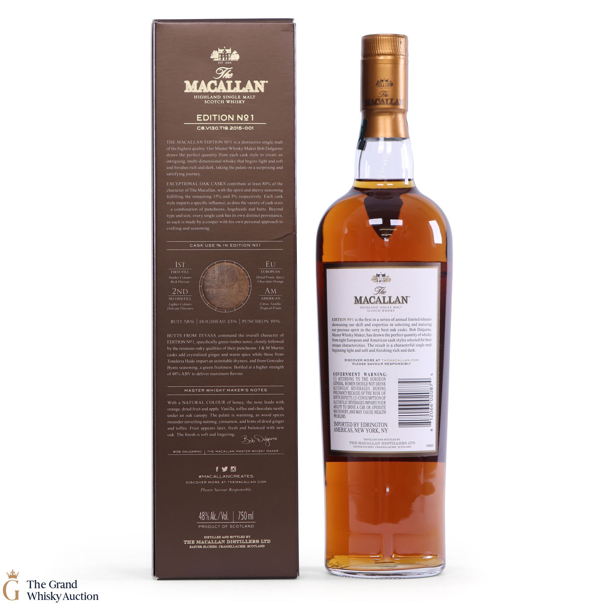 The Macallan Edition No. 1 is the debut expression in the Edition Series. This is a limited edition drawn from eight European and American oak cask styles selected for their unique characteristics.