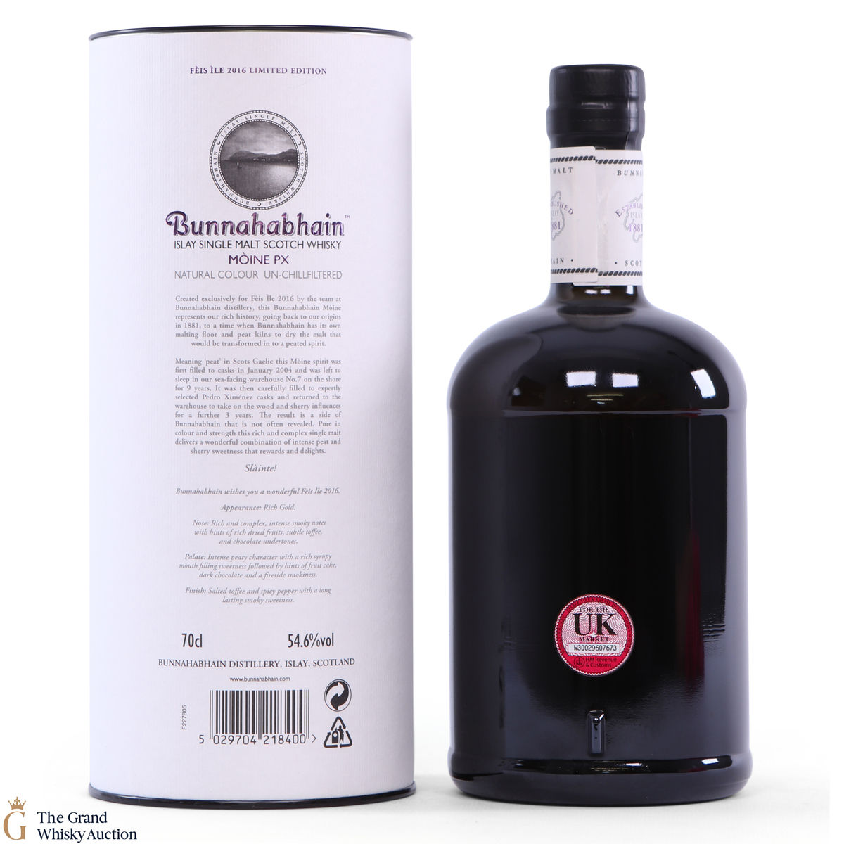 This 12-Year-Old Bunnahabhain limited edition was released for Feis Ile 2016 and exclusively available from the distillery. Matured in Moine casks for 9 years then finished in Pedro Ximenez casks for 3 years. This is one of only 833 individually numbered bottles.