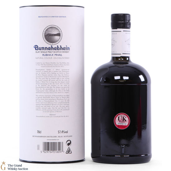 Bunnahabhain Rubha A’ Mhail is a 11-year old Bunnahabhain which was bottled for the 2015 Fèis Ìle. Aged in two Spanish Manzanilla sherry butts (#550 & #554) this is a limited edition of 1,200 individually numbered bottles.