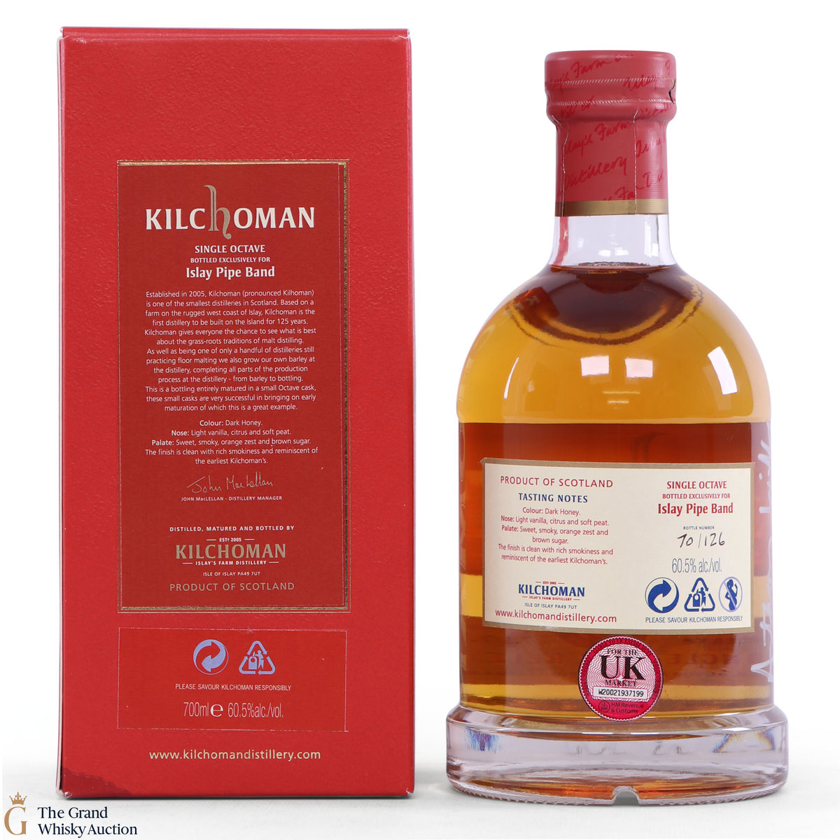 Kilchoman Distillery has sponsored the Islay Pipe Band since 2012 and this sponsorship has taken the form of a cask of whisky selected by John MacLellan, bottled and sold from the distillery with all the proceeds going to the Pipe Band.