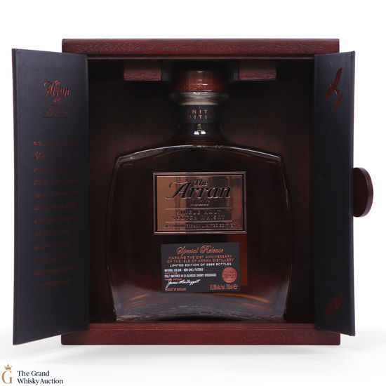 A limited-edition bottling of single malt from the Arran distillery to celebrate their 21st anniversary! The whisky used was distilled during the first three years of their production, matured in Sherry hogsheads. This is one of 5,988 bottles produced.
