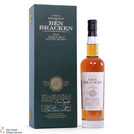 This Ben Bracken 22-Year-Old single malt from Speyside was matured in oak casks. It was produced at an undisclosed distillery and bottled by Clydesdale Scotch Whisky Co. for Lidl and comes in a smart green presentation box.