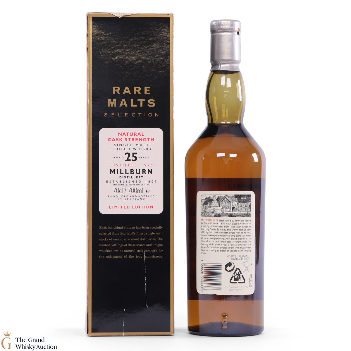 This Millburn 25-Year-Old single malt was distilled in 1975 and bottled in October 2001, at its natural cask strength of 61.9% ABV. This is an individually numbered bottle.