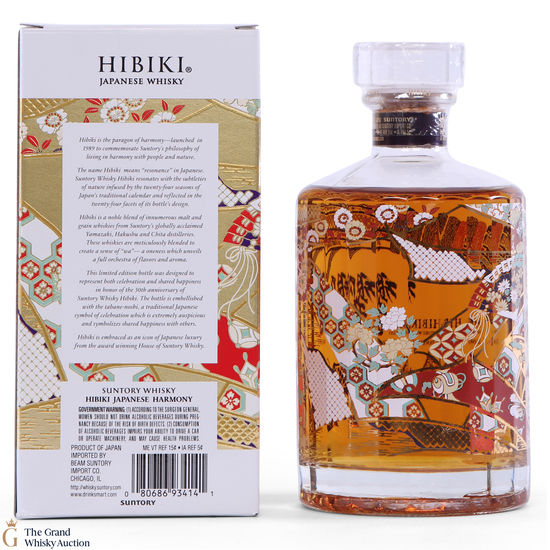 Hibiki Japanese Harmony is a blend of over ten malts and grains featuring Yamazaki, Hakushu, and Chita all aged in five types of cask. It was developed by fourth generation chief blender Shinji Fukuyo with production overseen by third generation master blender and great-grandson of the founder, Shingo Torii.
