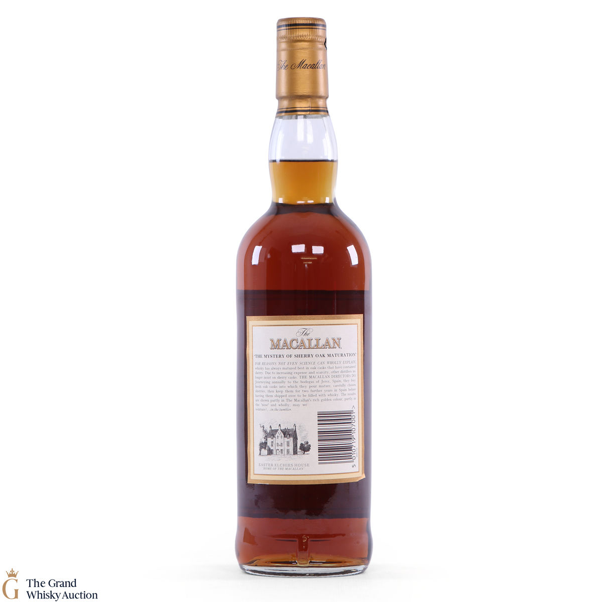 This is an old-style presentation of Macallan 10 Year old was bottled in the 1990s. This classic Speyside malt whisky matured in sherry oak casks from Jerez. Very collectable.