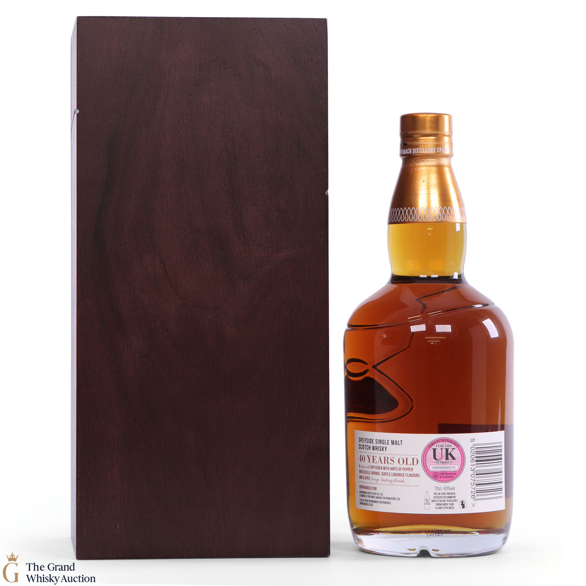 Due to the various ages of bottles and their seals, the condition of liquid is at the buyer's discretion and no claim can be lodged against failure/leakage in transit. Loss and breakage cover is available at 3% of the hammer price as standard. If the lot is not insured, no claim can be lodged against the courier or The Grand Whisky Auction for breakage or loss in transit.
