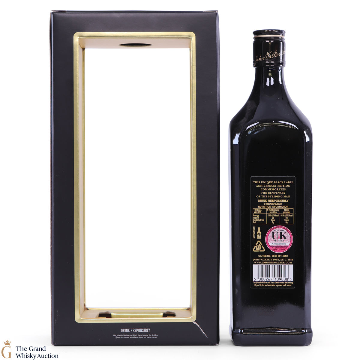 Released to celebrate the 100th anniversary of Johnnie Walker Black Label, in 2009, this special edition 12 year old Johnnie Walker has a striking black bottle and presentation box-frame .