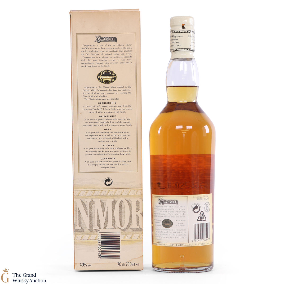 Due to the various ages of bottles and their seals, the condition of liquid is at the buyer's discretion and no claim can be lodged against failure/leakage in transit. Loss and breakage cover is available at 3% of the hammer price as standard. If the lot is not insured, no claim can be lodged against the courier or The Grand Whisky Auction for breakage or loss in transit.