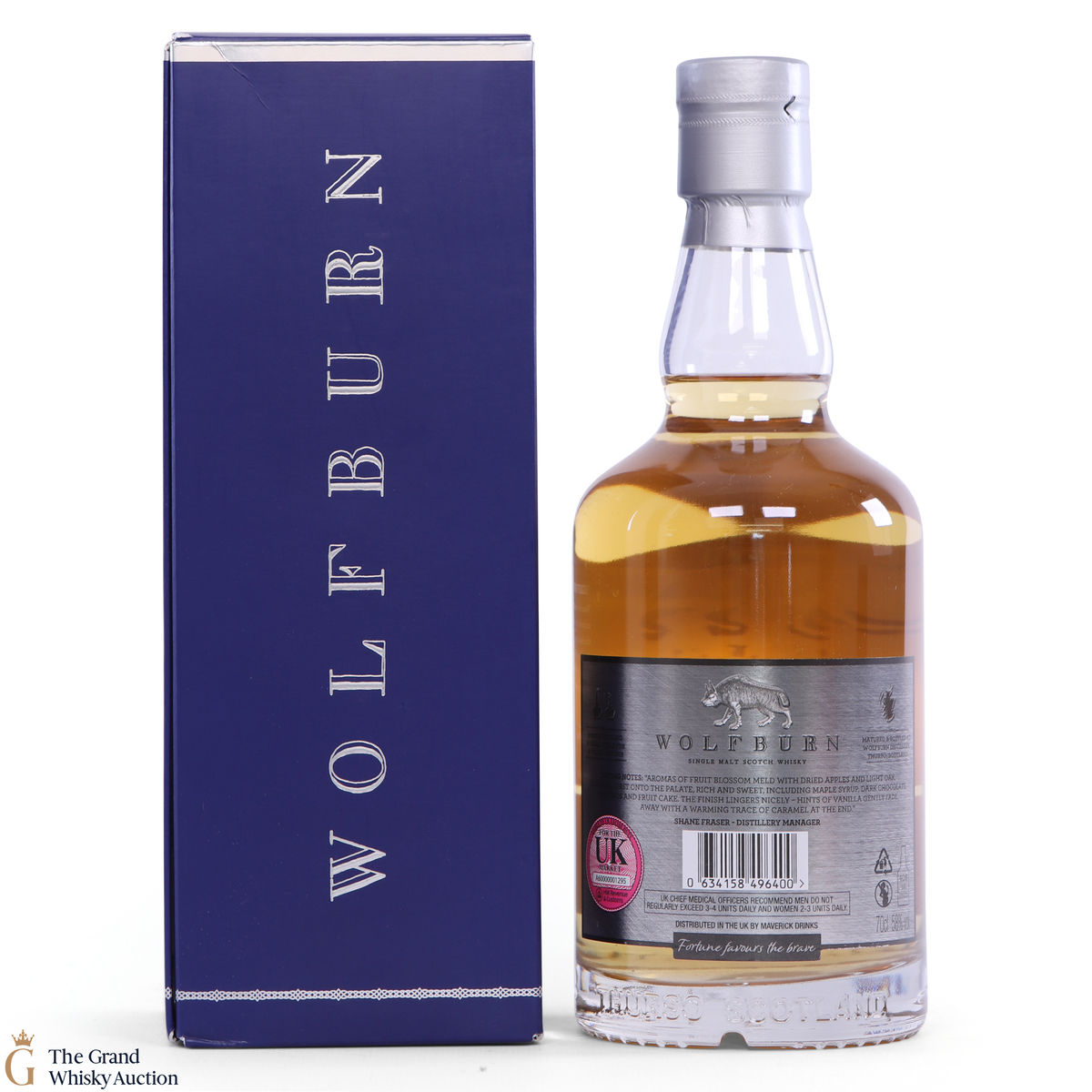 Due to the various ages of bottles and their seals, the condition of liquid is at the buyer's discretion and no claim can be lodged against failure/leakage in transit. Loss and breakage cover is available at 3% of the hammer price as standard. If the lot is not insured, no claim can be lodged against the courier or The Grand Whisky Auction for breakage or loss in transit.