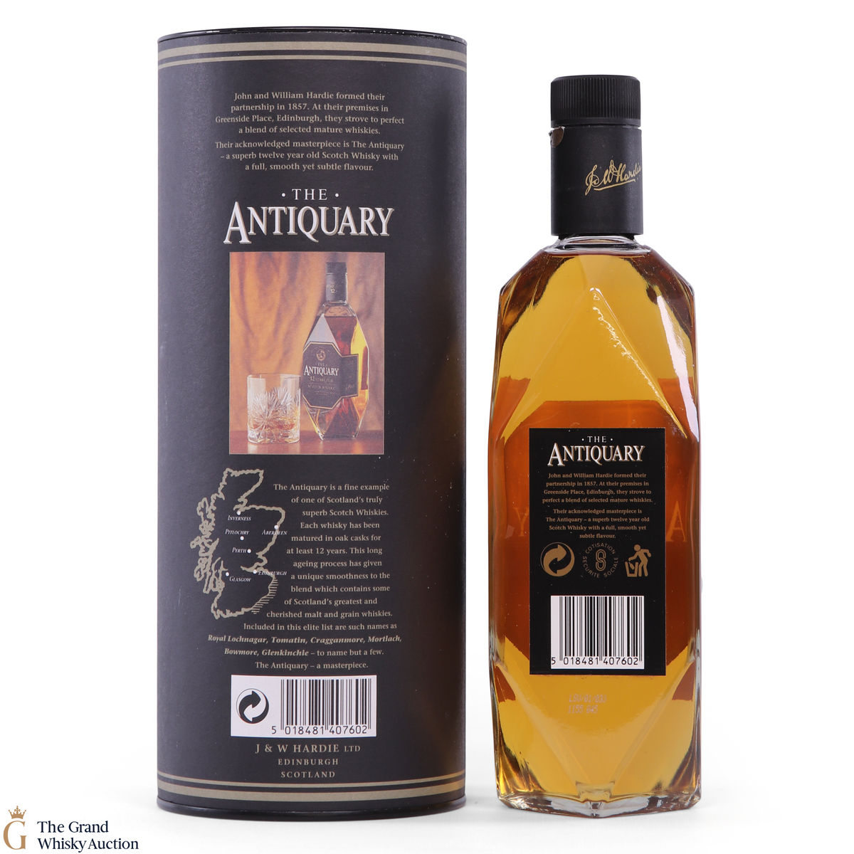 This bottling from Antiquary is a blend of some of Scotland's greatest 12-year-old malt and grain whiskies, including Royal Lochnagar, Tomatin, Cragganmore, Mortlach, Bowmore, Glenkinchie to name a few. Also, a quirky feature is that In the lid of this bottle box, there is a coaster that pops out!