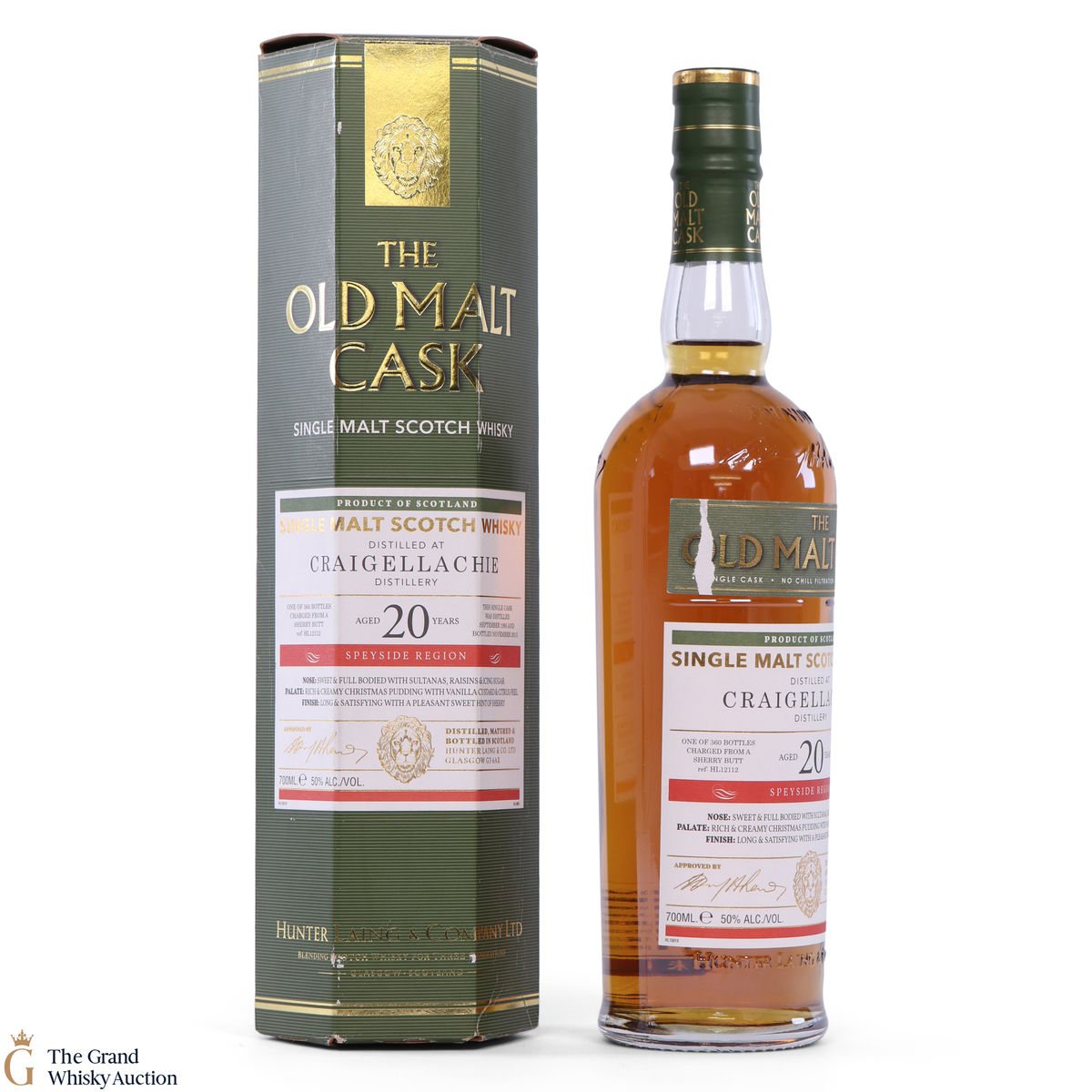 This single cask Craigellachie was distilled in September 1995 and was bottled in November 2015 at 20 Years Old by Hunter Laing & Company Ltd, for their Old Malt Cask range. This is one of 360 bottles from sherry butt #HL12112. Bottled at 50% ABV.