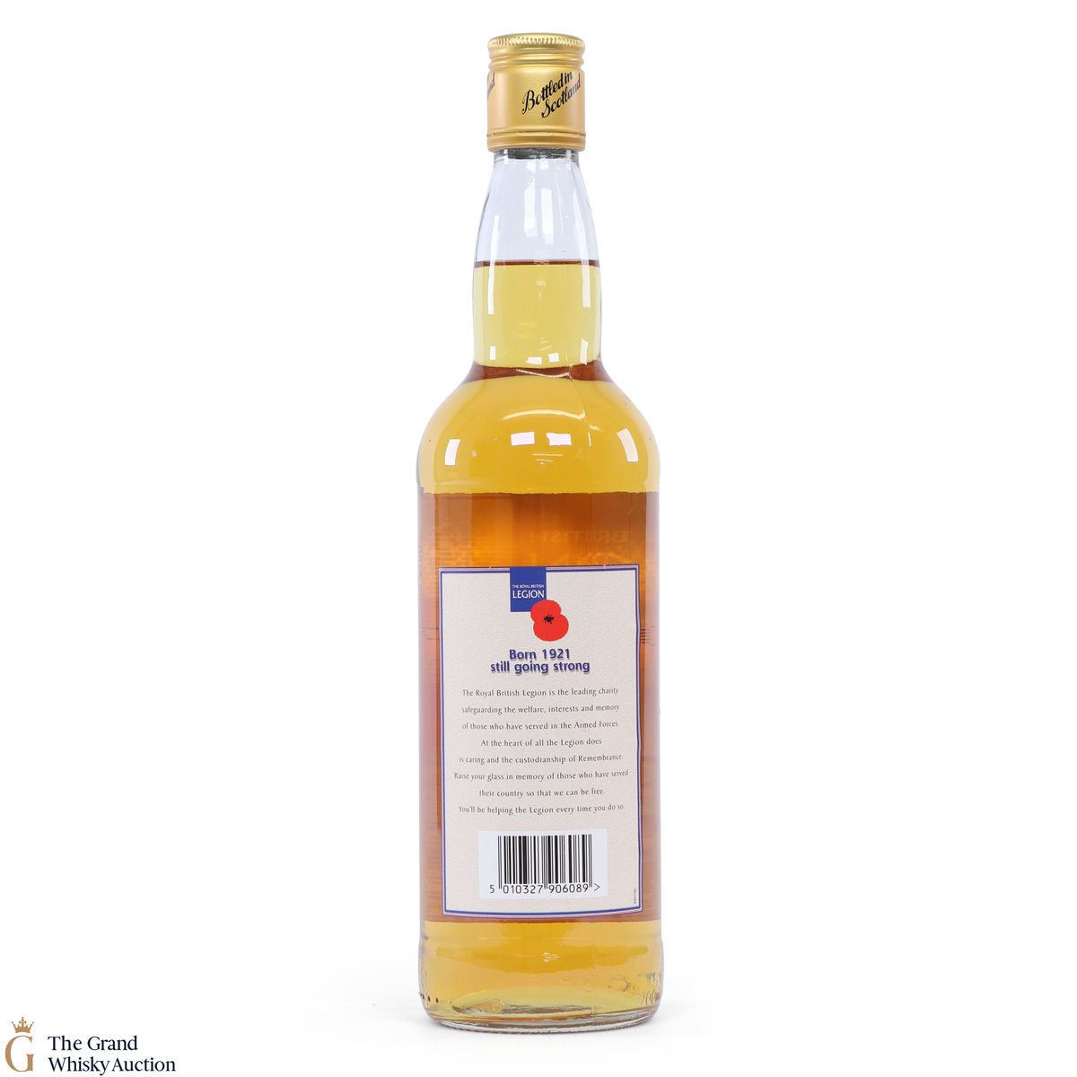 Distilled, matured, blended and bottled in Scotland exclusively for The Royal British Legion by Hamish Robertson & Co. Glasgow Scotland.
