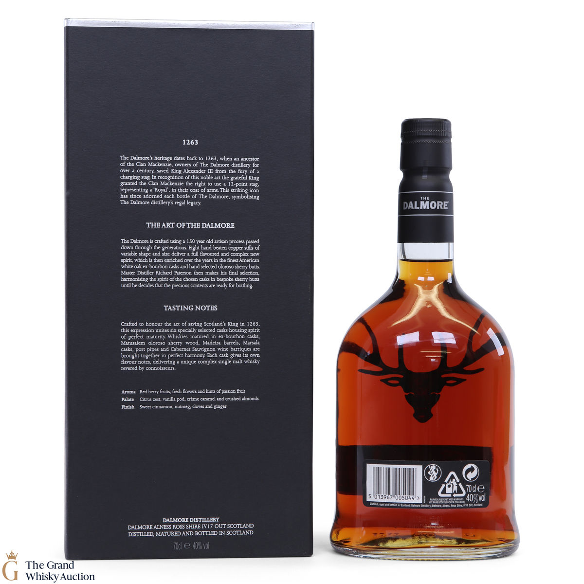 To make The Dalmore King Alexander III, Master Distiller Richard Paterson specially selected 6 casks of differently aged Dalmore malts matured in wine, Madeira, sherry, marsala, Kentucky bourbon and port casks. A remarkable feat of blending crafted to honour the act of saving Scotland's King in 1263. It is a rich, fruity Highland single malt.