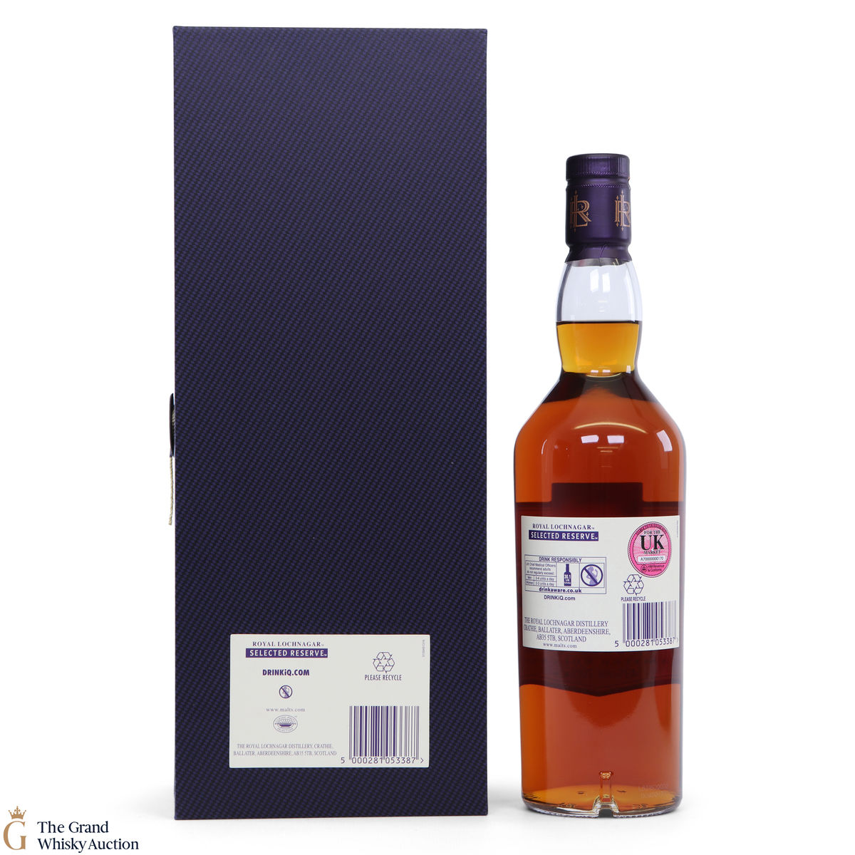 This is a limited-edition bottle of Royal Lochnagar Selected Reserve, matured in refill sherry butts and casks, and bottled in 2018.