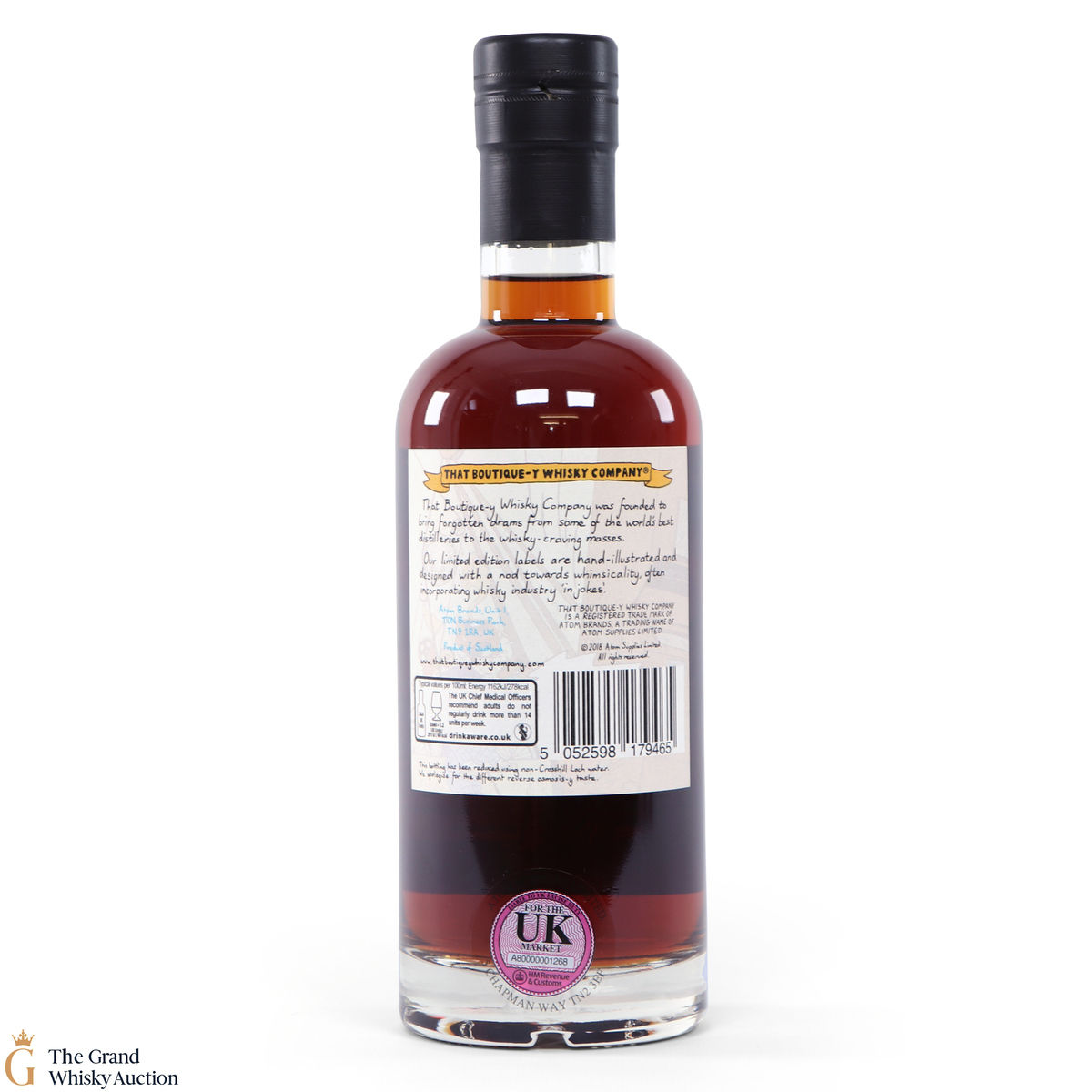 Due to the various ages of bottles and their seals, the condition of liquid is at the buyer's discretion and no claim can be lodged against failure/leakage in transit. Loss and breakage cover is available at 3% of the hammer price as standard. If the lot is not insured, no claim can be lodged against the courier or The Grand Whisky Auction for breakage or loss in transit.