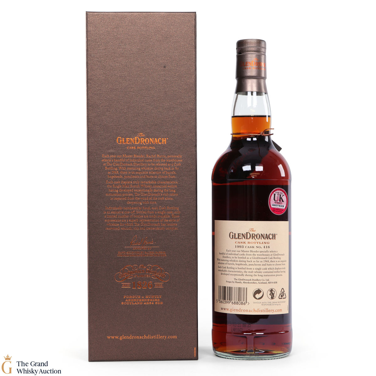 Due to the various ages of bottles and their seals, the condition of liquid is at the buyer's discretion and no claim can be lodged against failure/leakage in transit. Loss and breakage cover is available at 3% of the hammer price as standard. If the lot is not insured, no claim can be lodged against the courier or The Grand Whisky Auction for breakage or loss in transit.