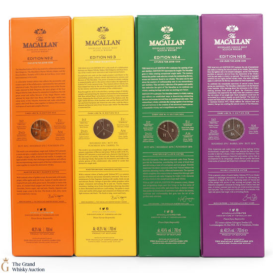 This lot brings together the Macallan Edition set to date (minus 1), comprising of Edition no.2, 3 ,4 and 5 in the annual limited edition series.