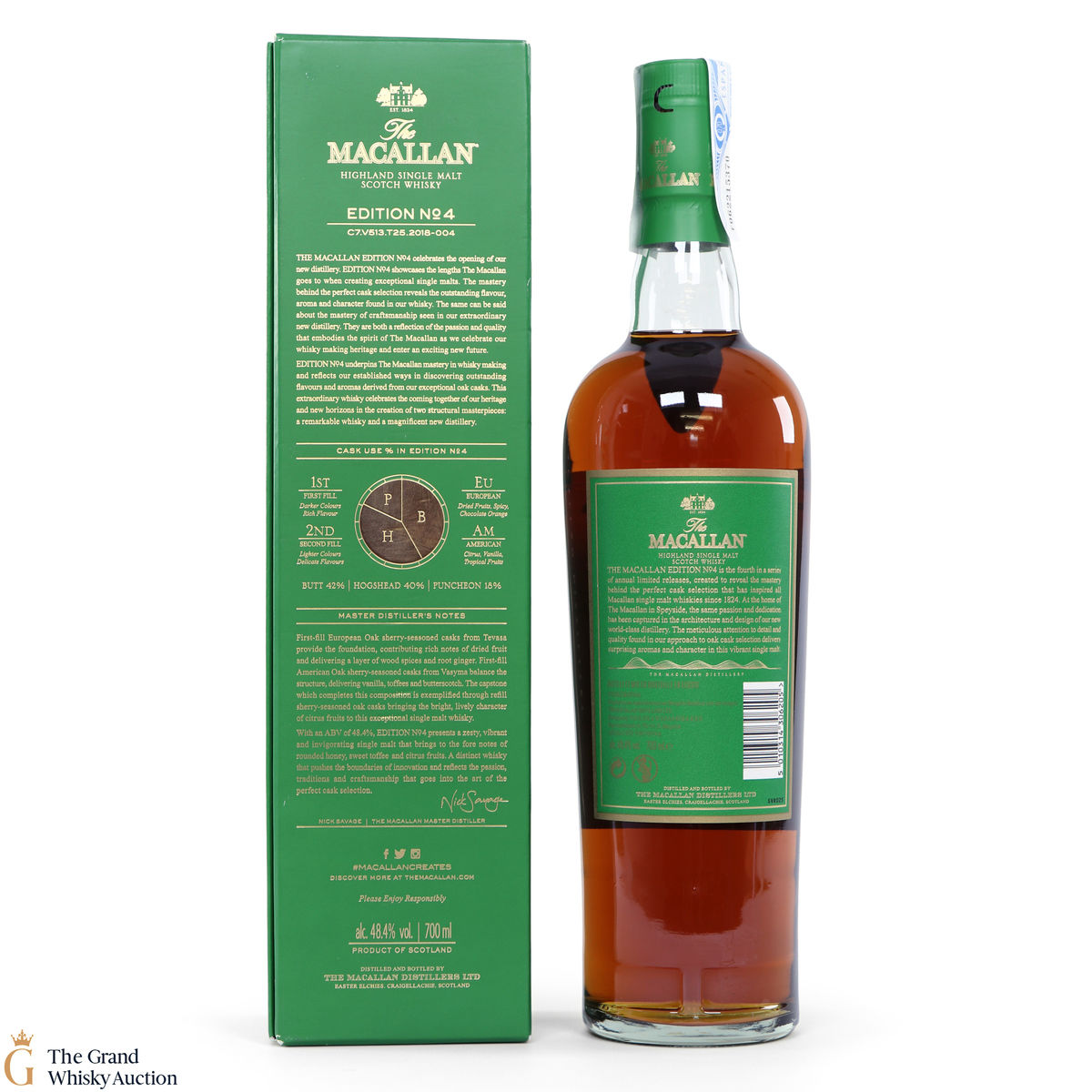 The fourth release in the Edition Series from The Macallan, this Speyside single malt is a celebration of the distillery's whisky making heritage, combining a unique selection of oak cask styles. Edition No.4 reflects the craftsmanship and pioneering design of the new Macallan distillery.