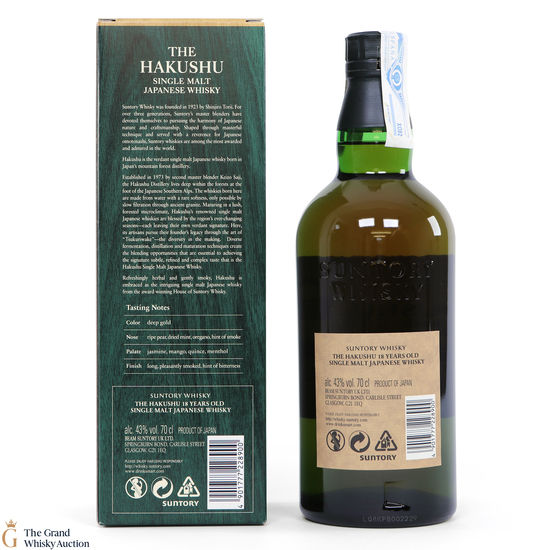 Hakushu 18 Year Old is part of the Suntory group. Not many people know, but at the time of writing this descrpition, Bowmore is part of this conglomerate.