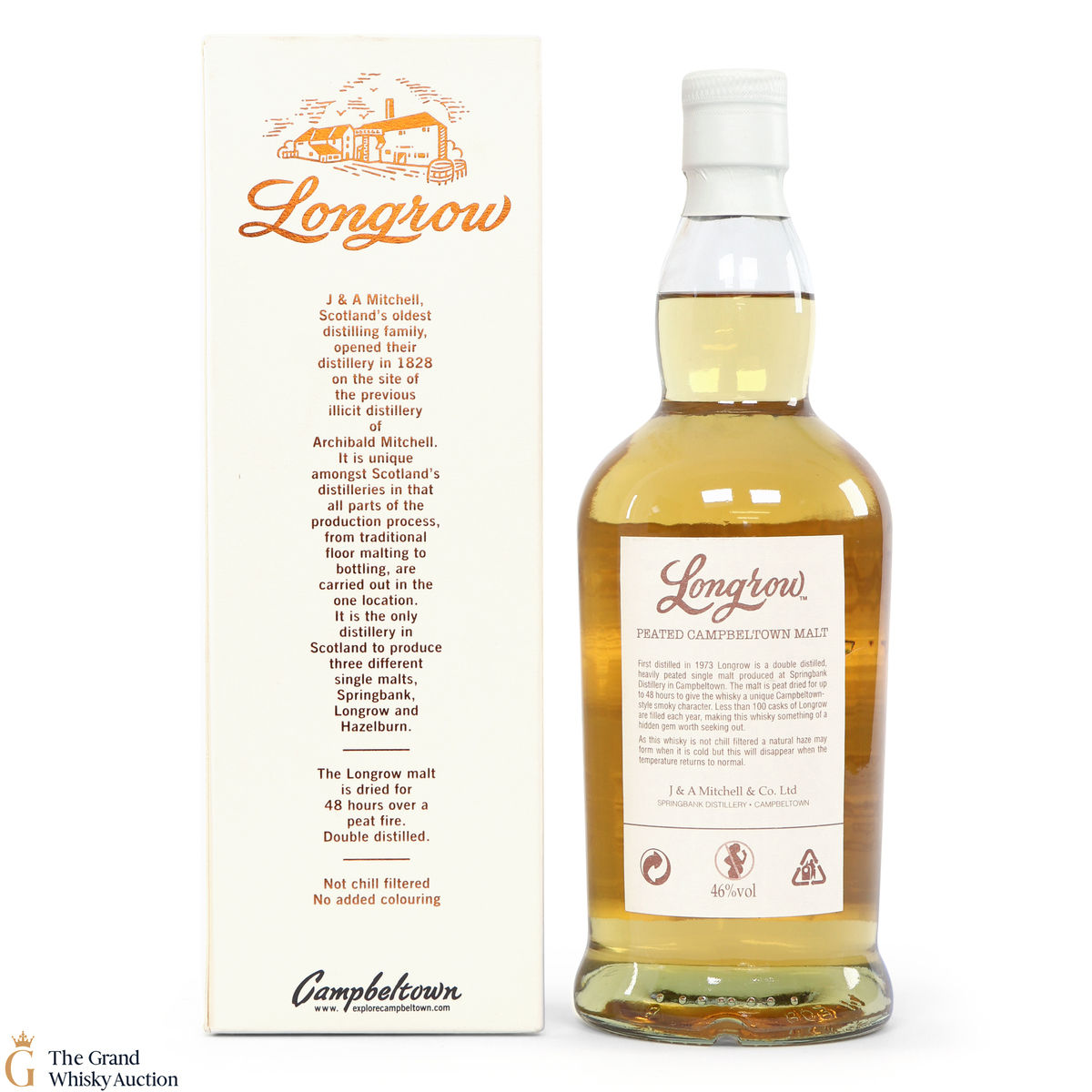 A bottle of Longrow Peated - This is essentially the awesome Longrow C.V. bottling in new packaging, which used to be Longrow's entry-level whisky. Longrow is Springbank's heavily peated whisky - this is a no age statement expression.