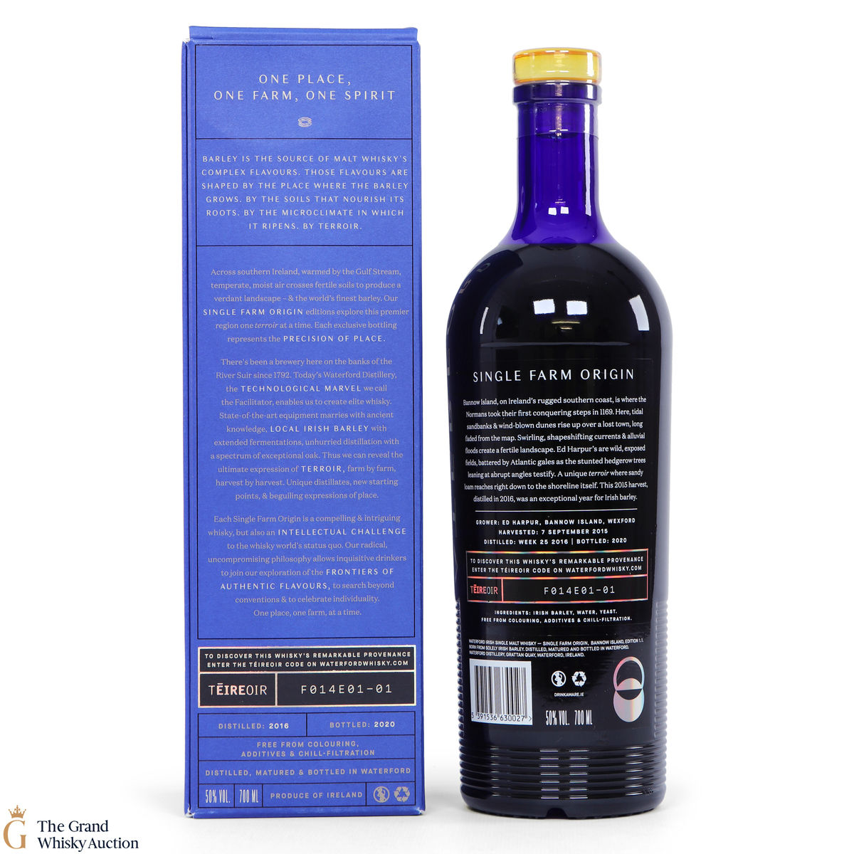 Bannow Island 1.1 is one of the first releases from the Waterford Distillery's Single Farm Origin series. This single malt Irish whisky was distilled using a single vintage of Overture barley grown on the south coast of Co. Wexford by Ed Harpur on his Bannow Island farm. Matured in French and American oak casks, and bottled at 50% ABV with no chill-filtration or additional colouring.