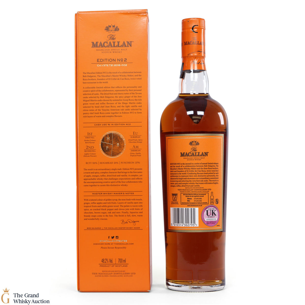 This is the second release from the Macallan Edition series. Edition No.2 is a collaboration between Macallan's master blender Bob Delgarno and legendary Spanish chefs Joan, Josep and Jordi Roca. The Rocas are the three brothers behind El Celler de Can Roca (named Best Restaurant in the World twice by Restaurant magazine). This single malt was drawn from a combination of sherry puncheons, butts and refill hogsheads.