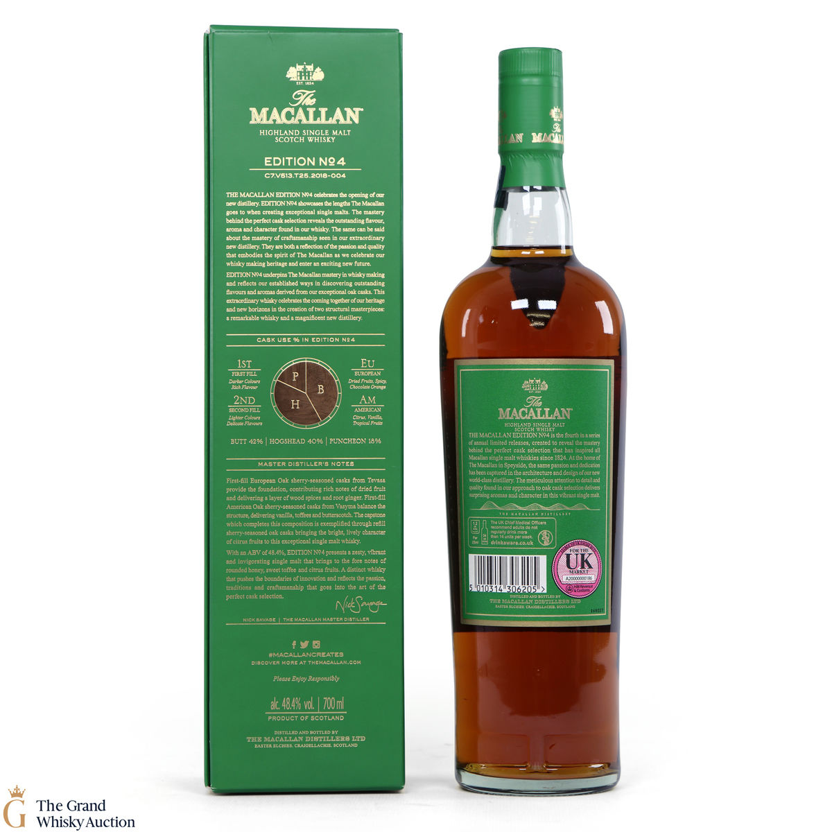 The fourth release in the Edition Series from The Macallan, this Speyside single malt is a celebration of the distillery's whisky making heritage, combining a unique selection of oak cask styles. Edition No.4 reflects the craftsmanship and pioneering design of the new Macallan distillery.