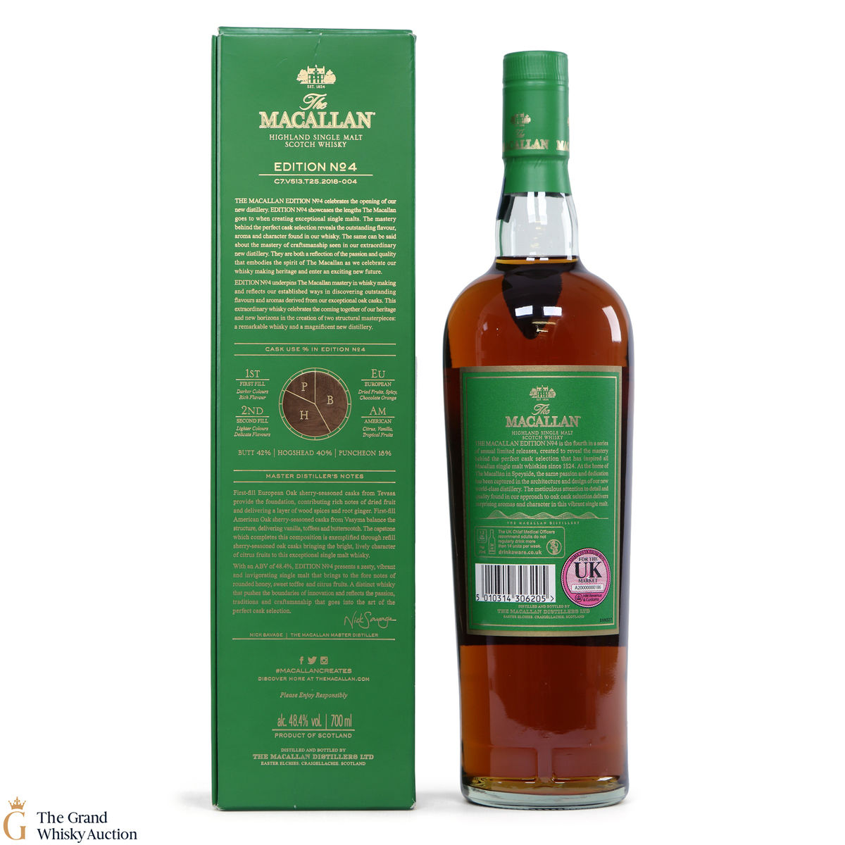 The fourth release in the Edition Series from The Macallan, this Speyside single malt is a celebration of the distillery's whisky making heritage, combining a unique selection of oak cask styles. Edition No.4 reflects the craftsmanship and pioneering design of the new Macallan distillery.