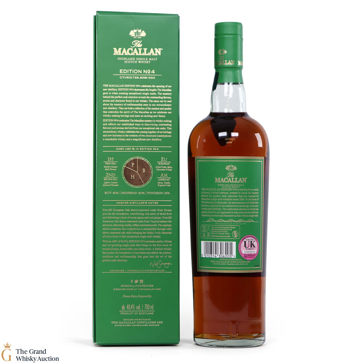 The fourth release in the Edition Series from The Macallan, this Speyside single malt is a celebration of the distillery's whisky making heritage, combining a unique selection of oak cask styles. Edition No.4 reflects the craftsmanship and pioneering design of the new Macallan distillery.