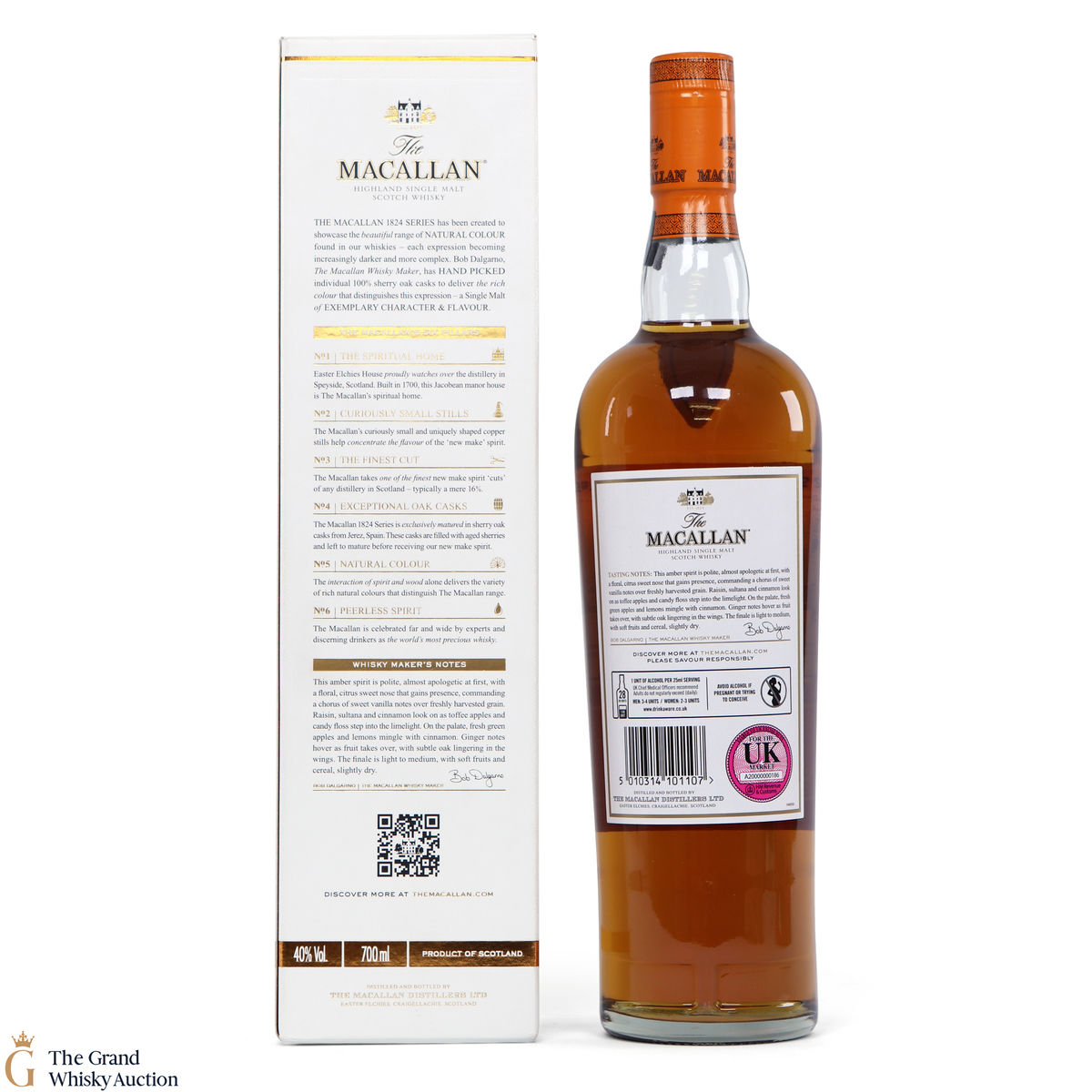 The Macallan 1824 Series celebrates natural colour. The most distinctive and defining characteristic of Macallan is the sherry-seasoned oak casks that are used to mature the whisky. This series shows commitment to 100% natural colour, drawn from wood. The colour of each expression becomes deeper as the range progresses.