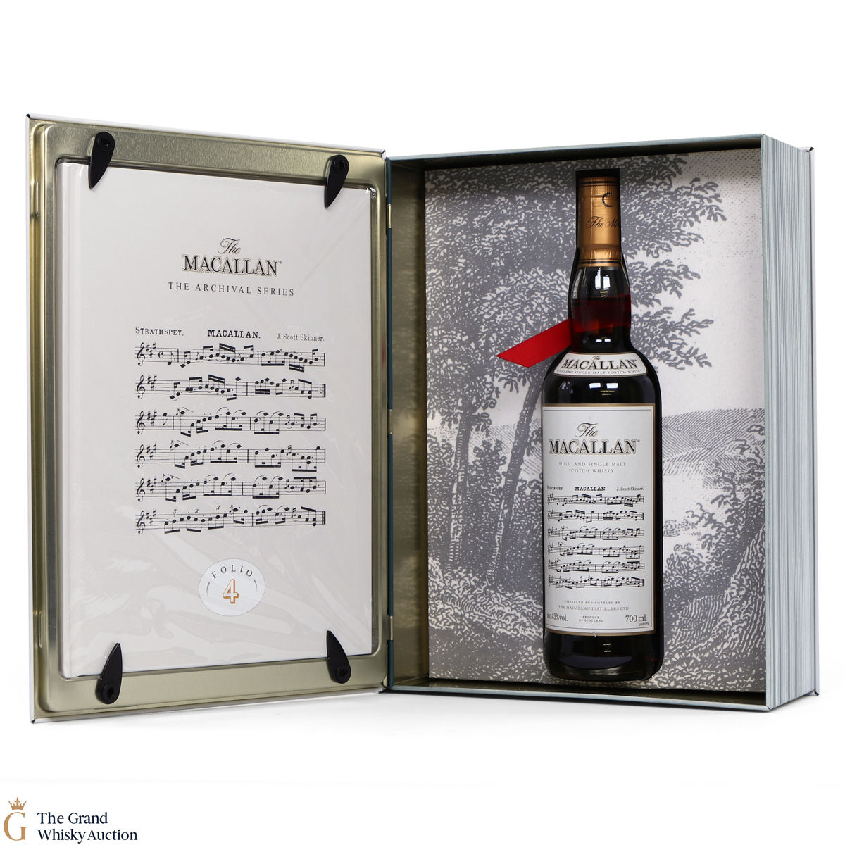 The fourth edition in the Archival Series from The Macallan. Folio 4 remembers the legendary advertising campaigns of the 1970s, 1980s and 1990s that brought The Macallan to the public’s attention outside of Scotland. It is presented in a beautiful book shaped, tin case. It features an advertisement including a Strathspey composed by James Scott Skinner (1843-1927). The advert notes that Skinner was so moved by his favourite malt he created a unique piece of music featuring his signature lilting notes with the simple catchphrase: “The Macallan. The Malt.”