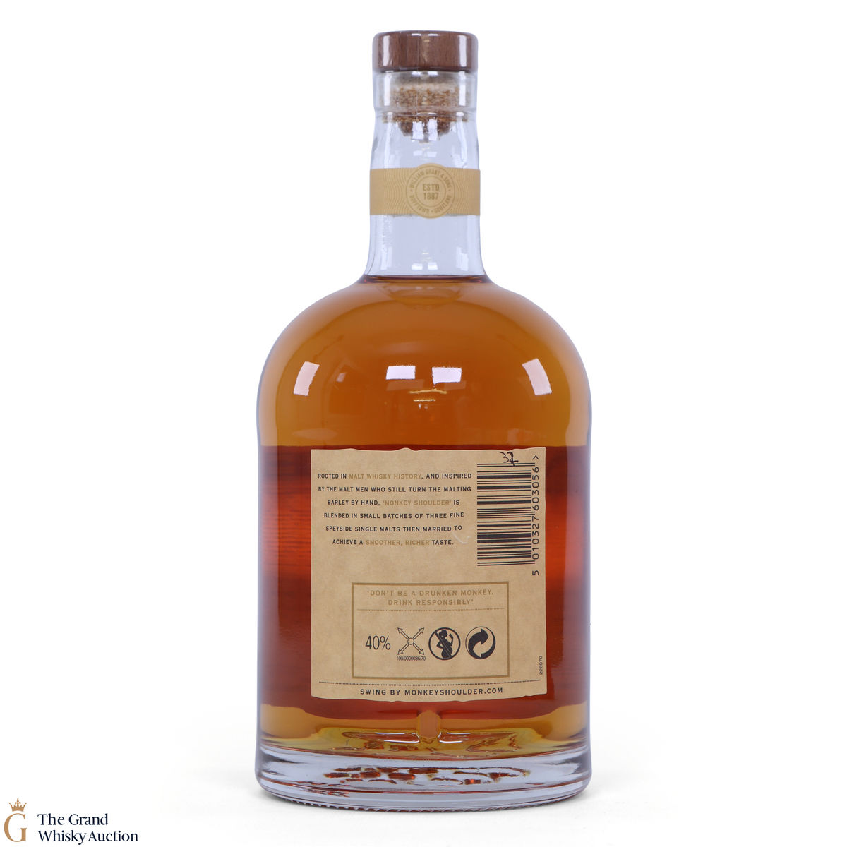 Due to the various ages of bottles and their seals, the condition of liquid is at the buyer's discretion and no claim can be lodged against failure/leakage in transit. Loss and breakage cover is available at 3% of the hammer price as standard. If the lot is not insured, no claim can be lodged against the courier or The Grand Whisky Auction for breakage or loss in transit.